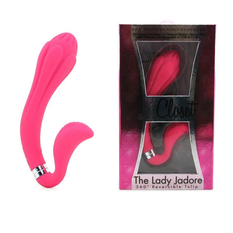 The Jubilee is a dual-stimulating, translucent TPE multi-speed vibrator with two powerful motors. One motor vibrates the shaft, while the other vibrates the bunny bumps. TPE is stretchy, non-sticky, and enjoyable with lubricant.